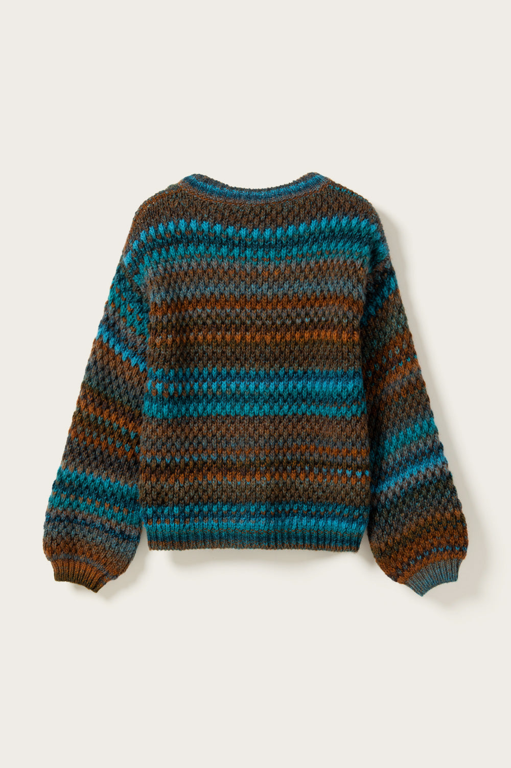 This chunky knit cardigan is the perfect blend of comfort and style. Designed with a relaxed fit and voluminous sleeves, it features a soft textured knit with a subtle striped pattern that adds dimension and warmth. Finished with a button-down front and ribbed hems, it offers a timeless yet modern silhouette that’s easy to style. Layer it over a simple tee or a turtleneck for an effortlessly chic, cold-weather look.