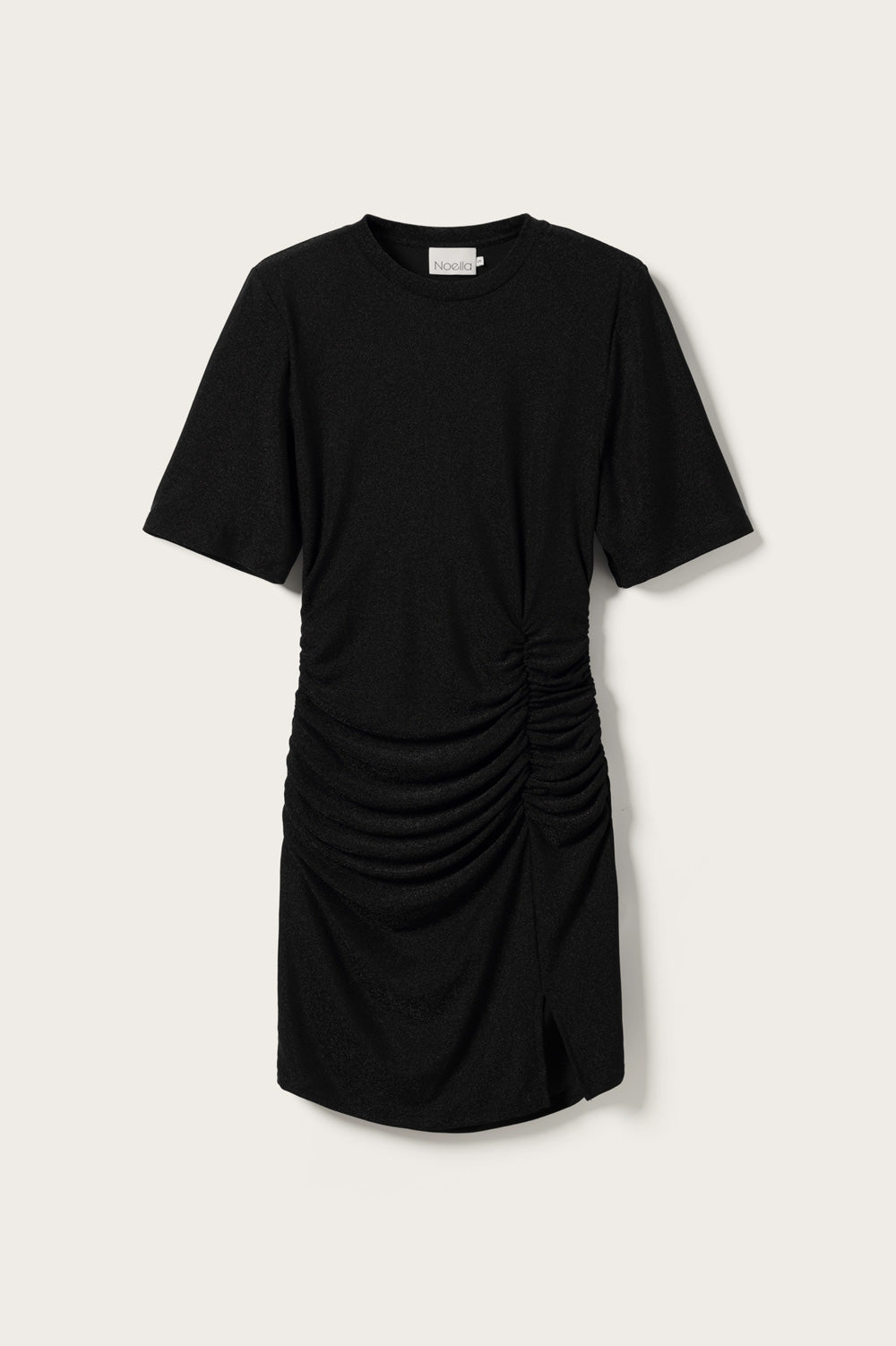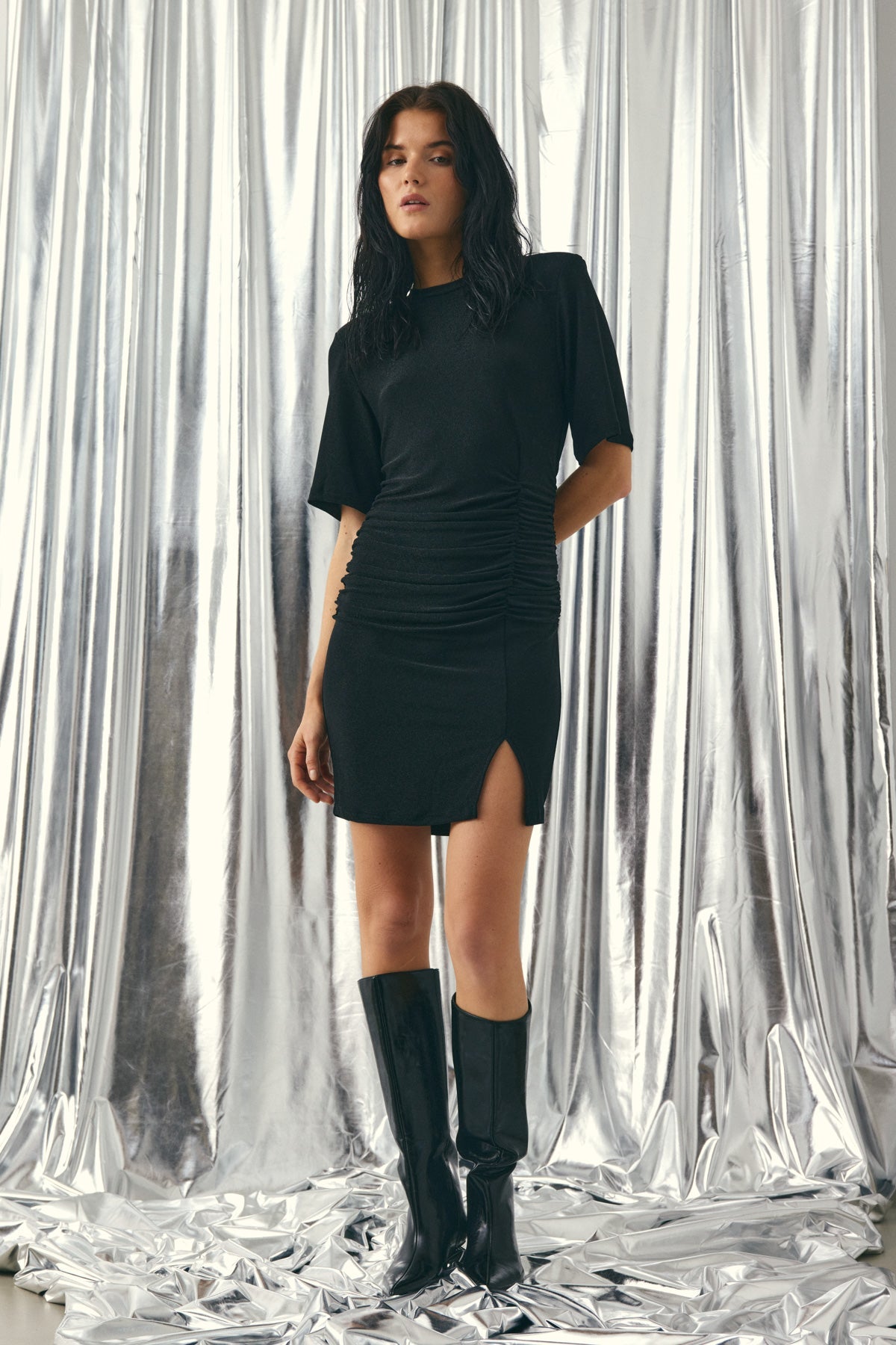 Kiunna Dress is a short dress in shimmering fabric with smock detail and a front slit. Kiunna Dress has a fitted silhouette.