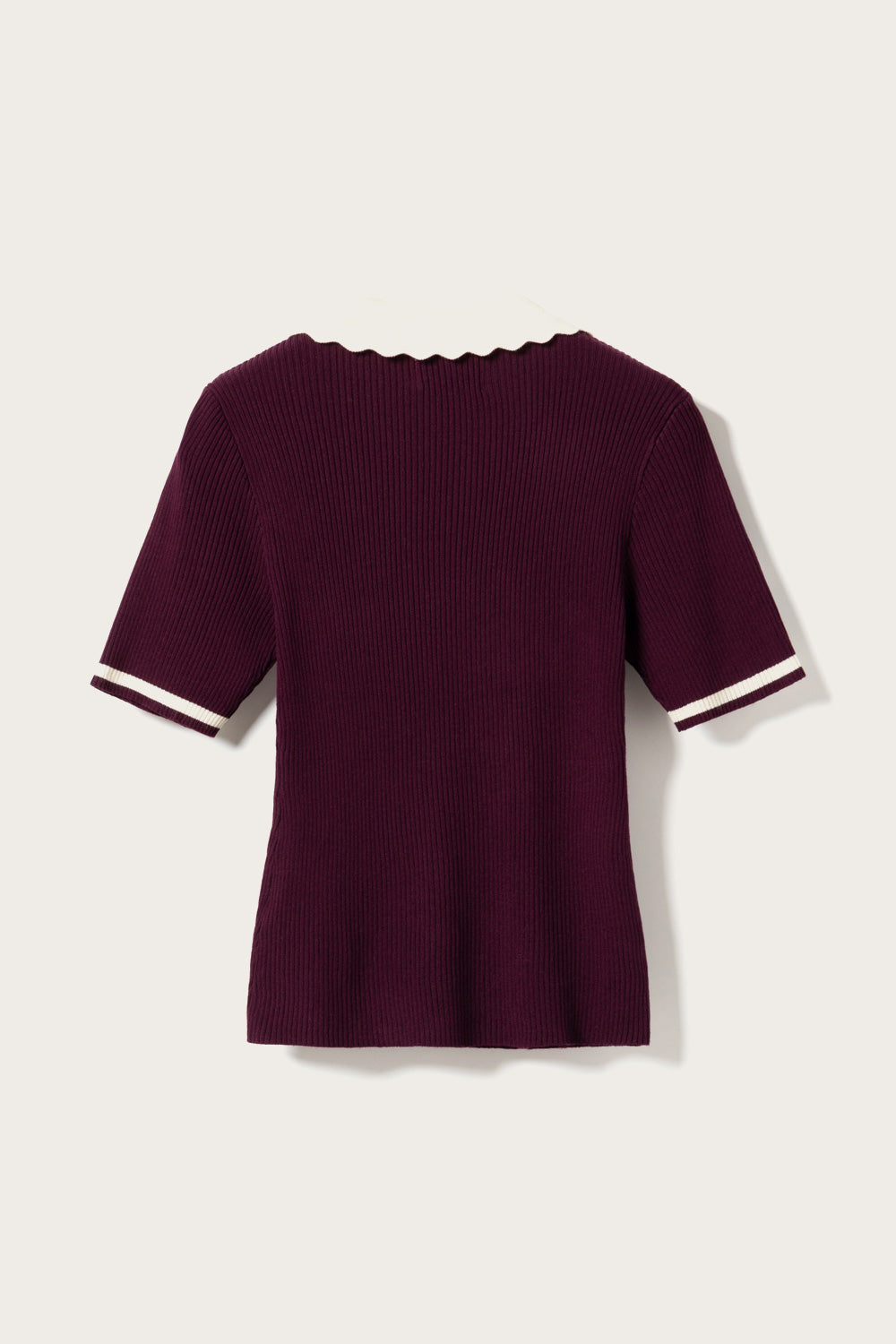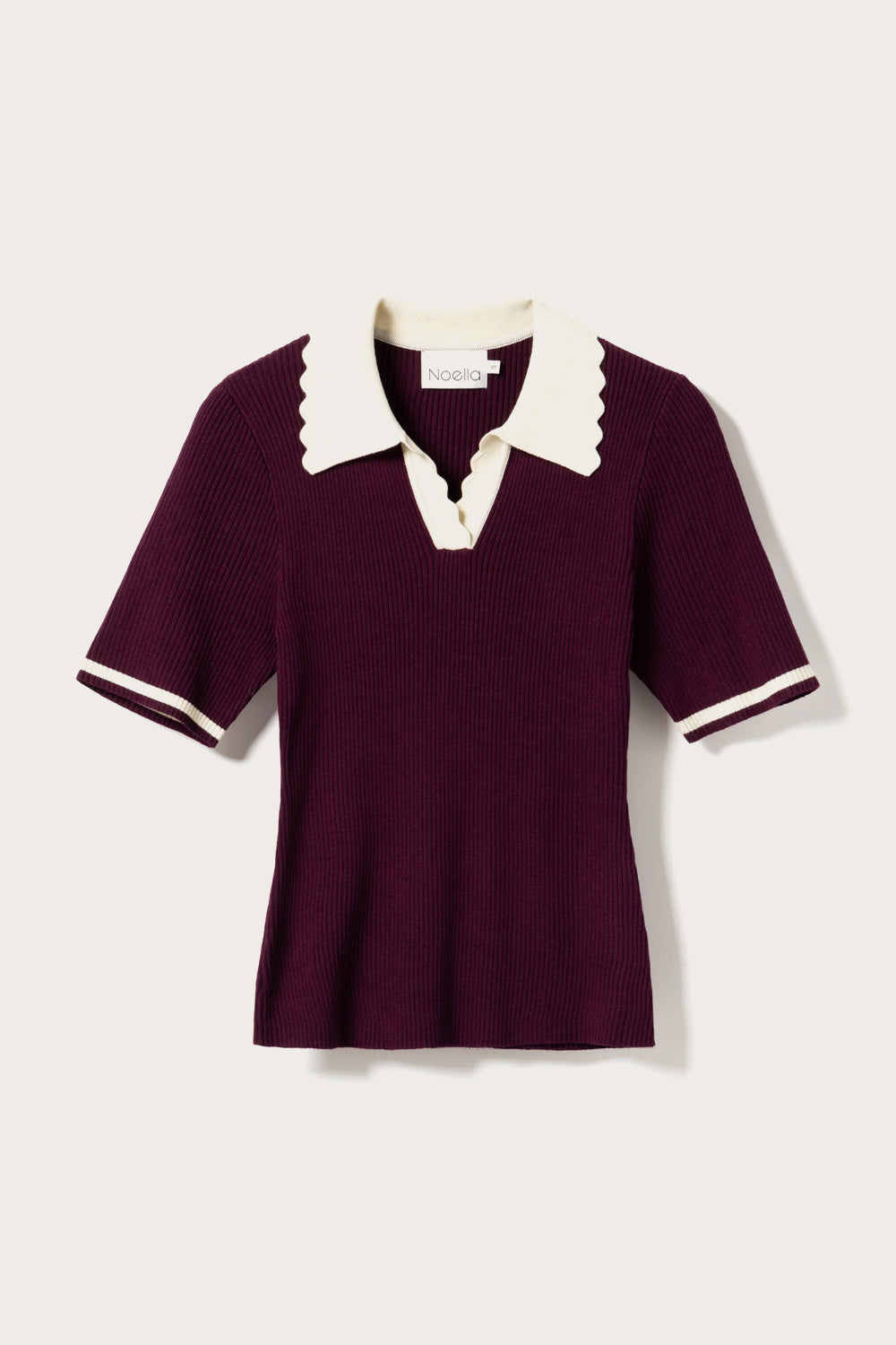 The Lilo Polo Knit is a knitted polo made from 100 viscose, featuring short sleeves, ribbed details, and a contrasting white collar. Designed with a classic fit and timeless silhouette, Lili Polo offers a subtle romantic touch through its wavy collar texture. Perfect as part of an everyday outfit.