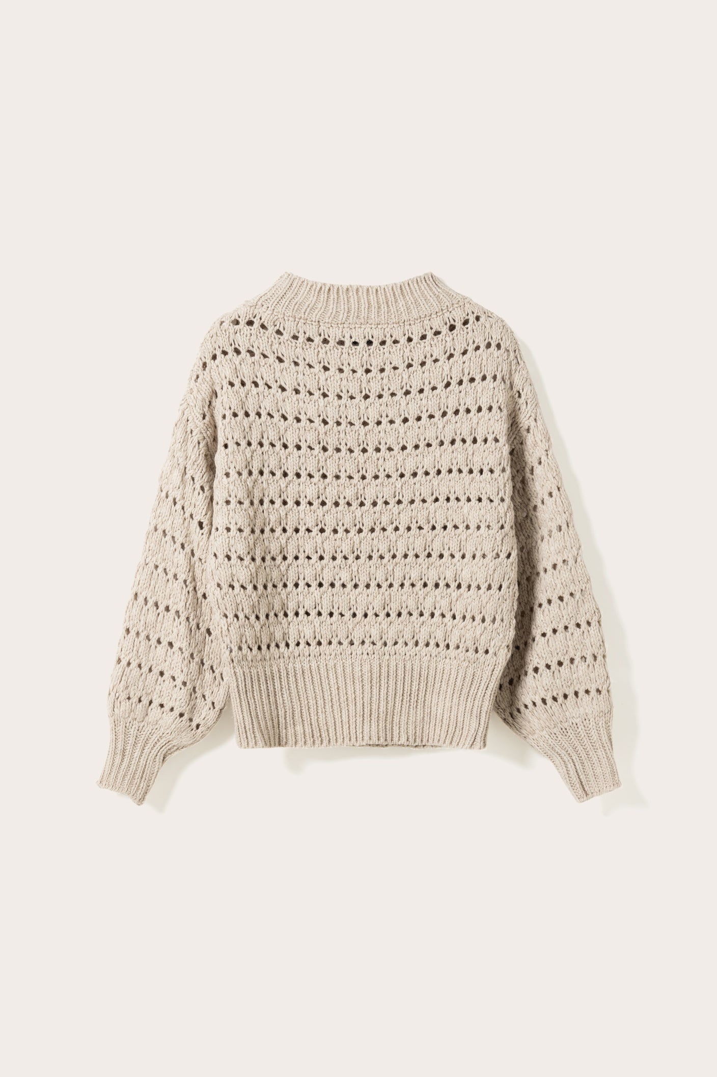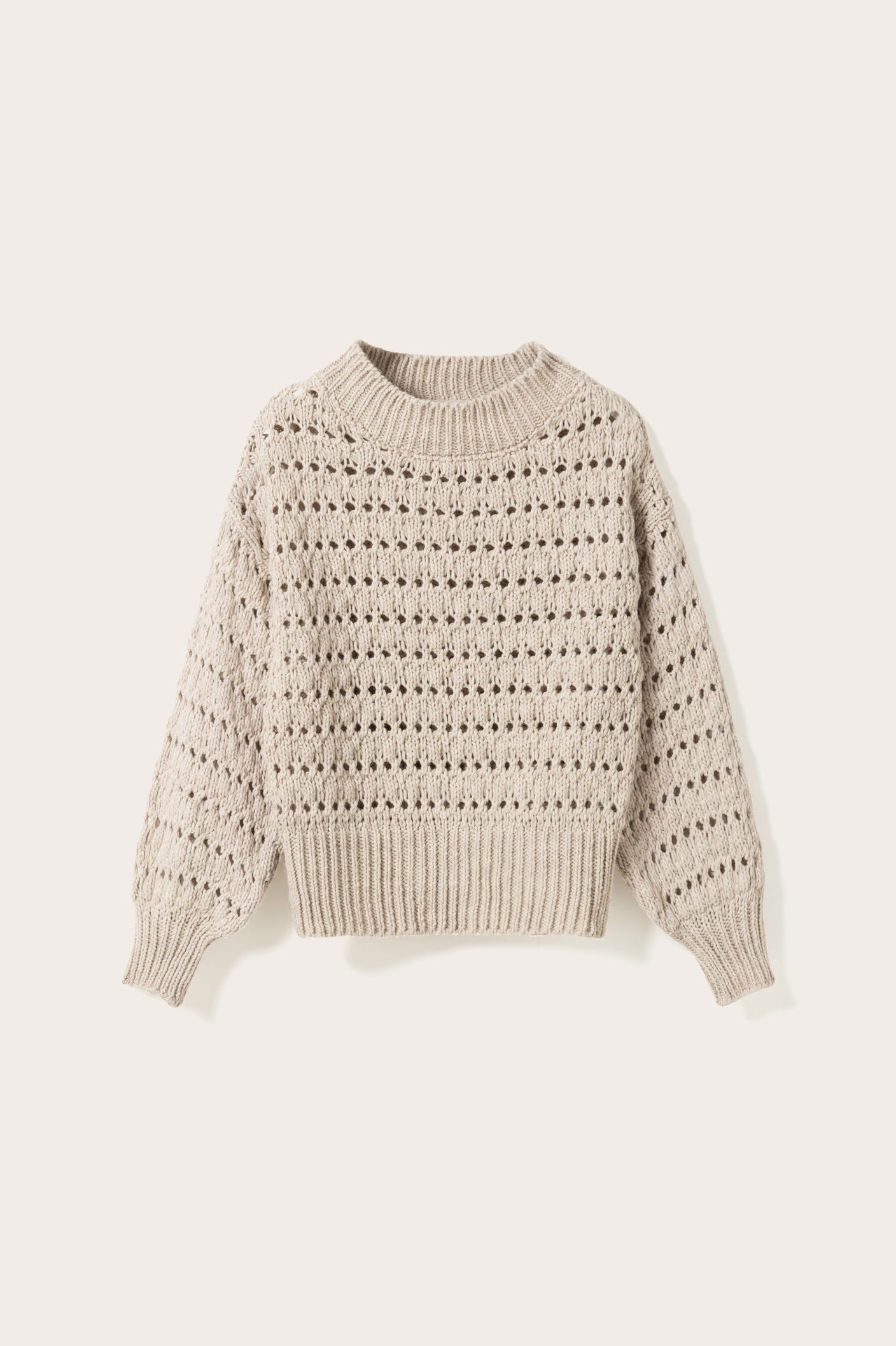 Loranne Knit is a knit sweater with eyelet pattern and ribbed edges. It has a loose fit, making it easy to style for everyday wear.