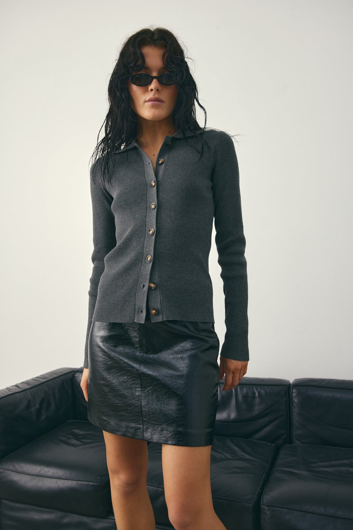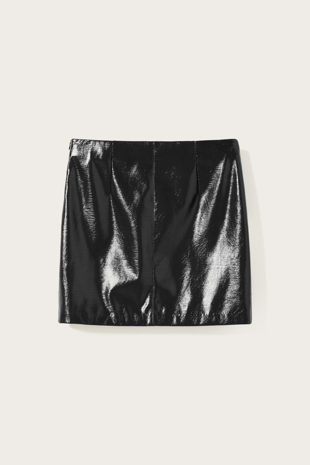 Lovetta SH Skirt is a short skirt with a defined front cutline and a shiny finish. Its fitted, straight silhouette makes it easy to style with a T-shirt for everyday wear or with a party top for special occasions.
