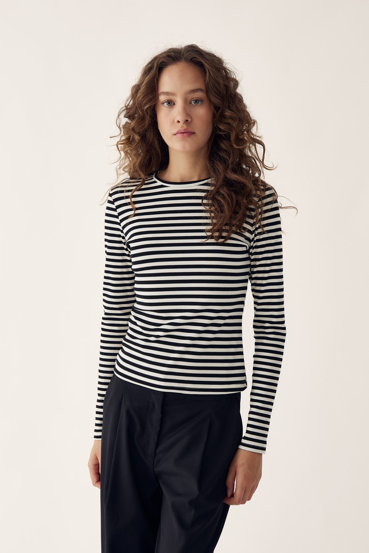 Luana Top is a long-sleeved T-shirt with a striped pattern and round neckline. Luana Top has a regular fit, creating a relaxed and simple look. Use it as part of your basic wardrobe.