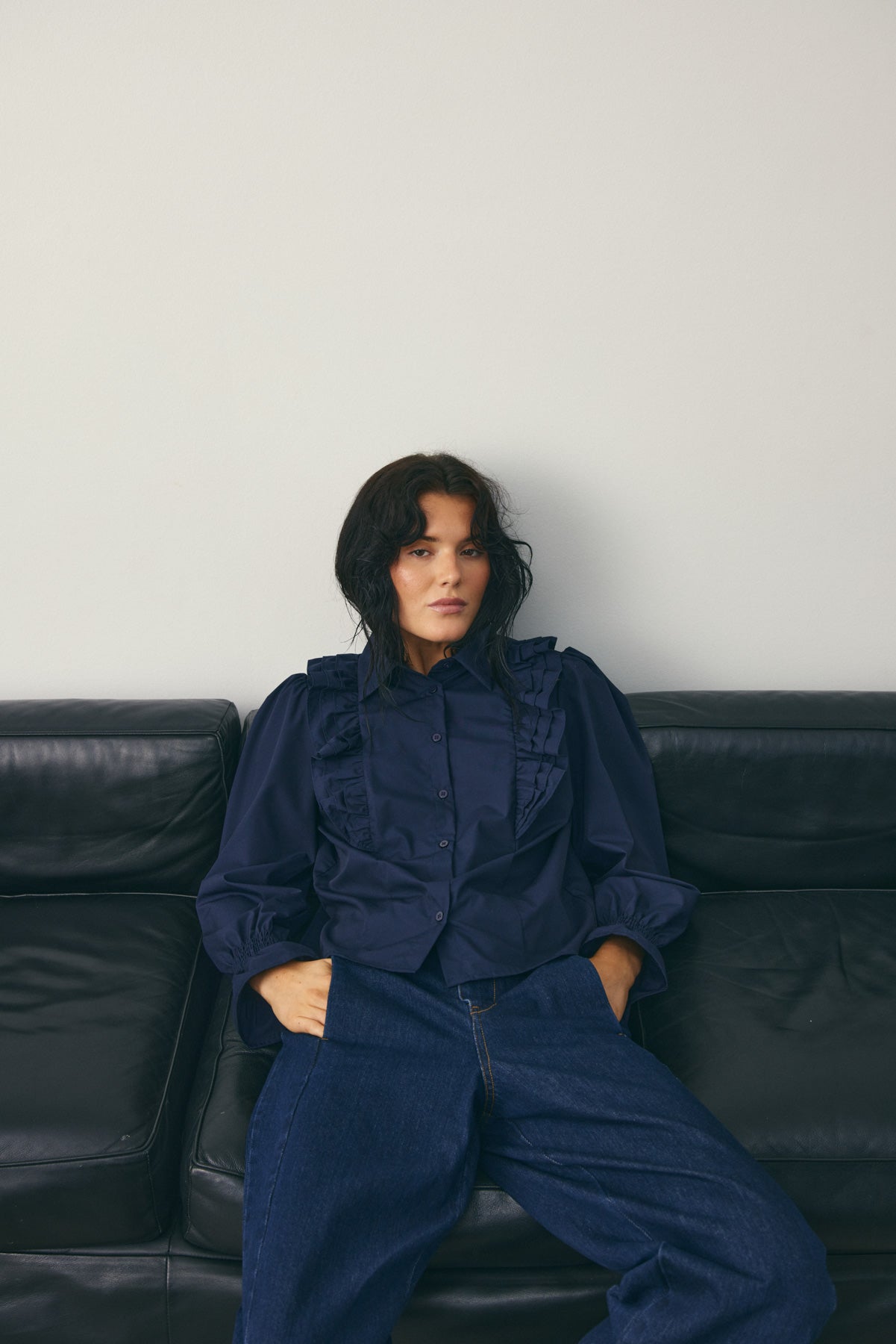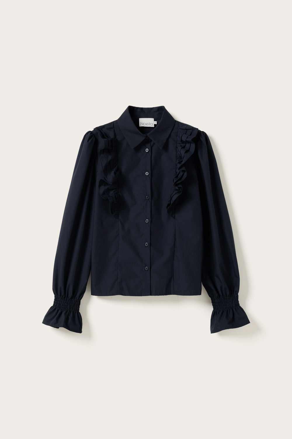 Lucina Blouse is a shirt with long sleeves and ruffle details at the sleeves and front. Lucina Blouse has a loose fit, making it classic and easy to style.